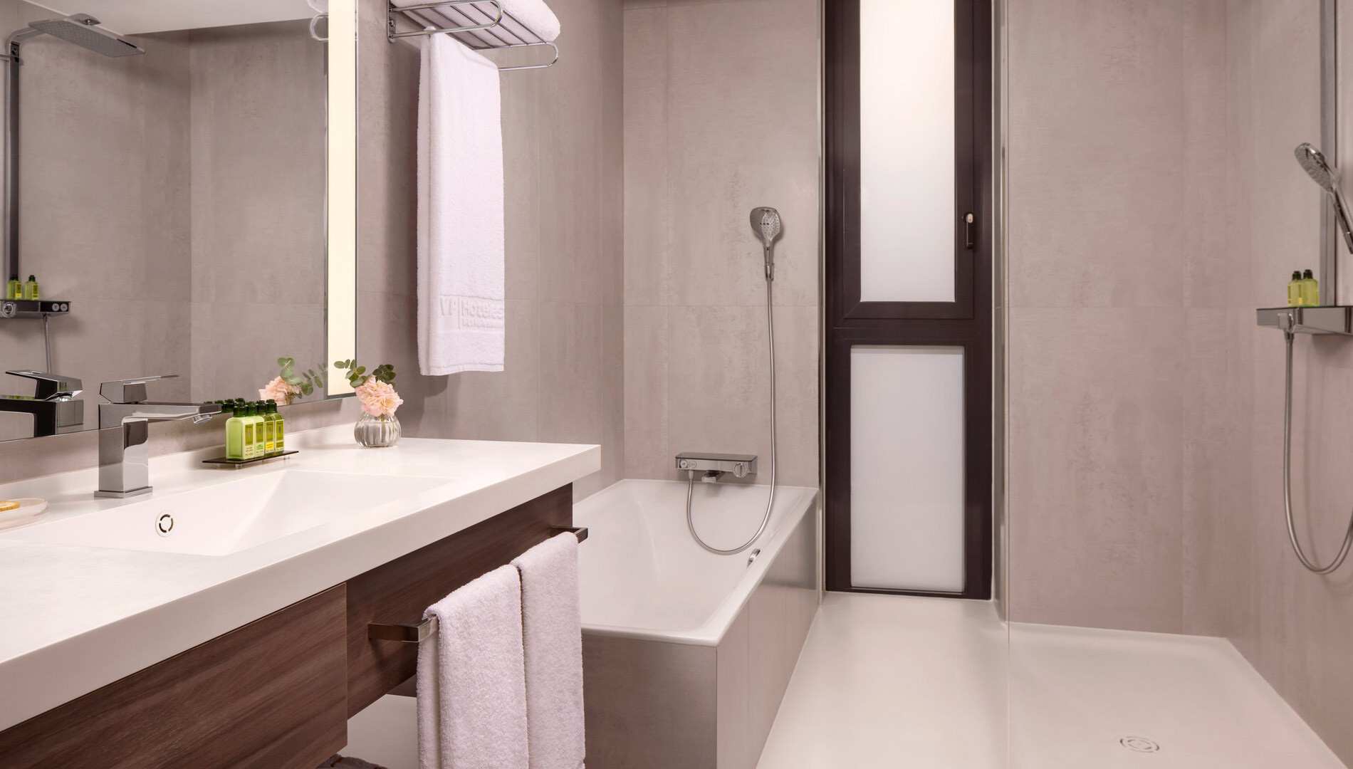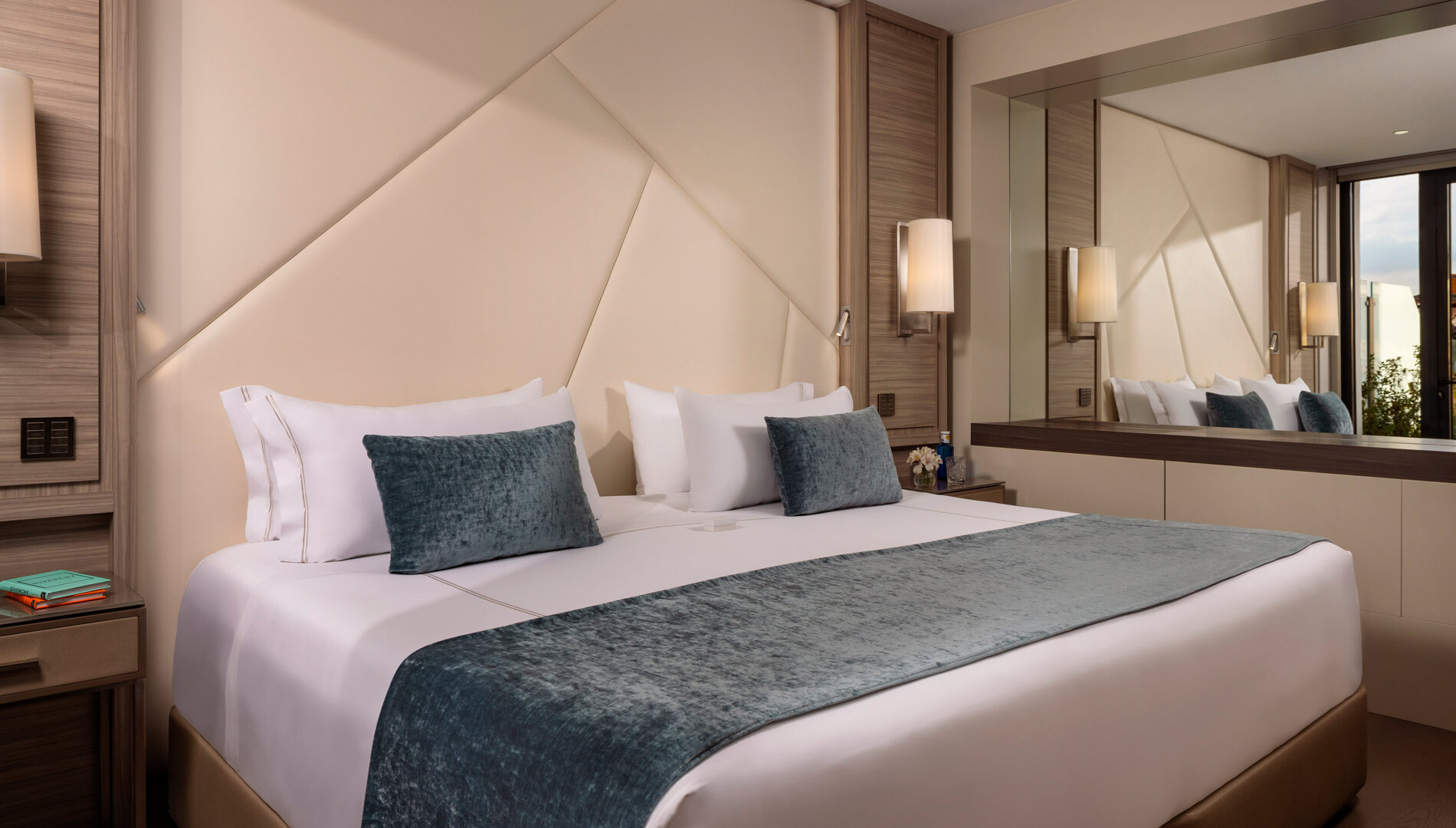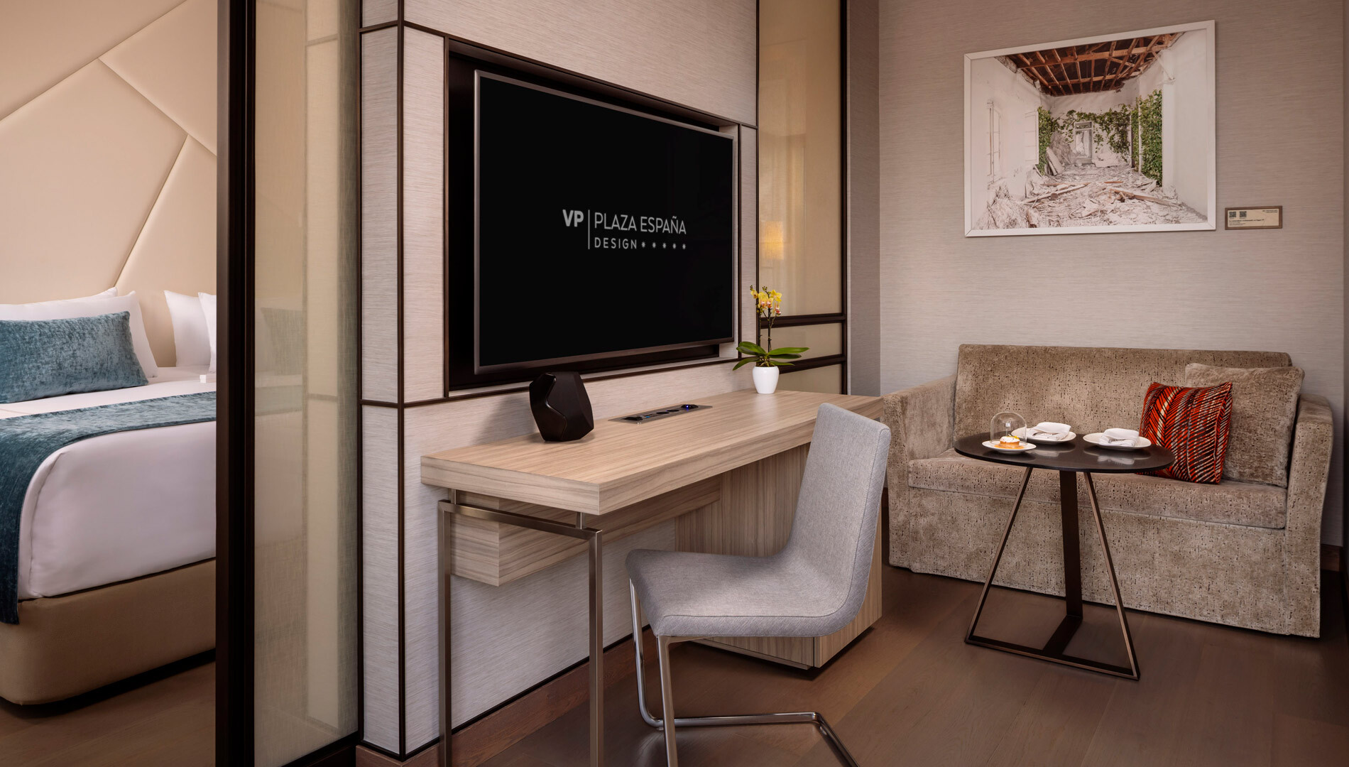 Unsere Junior Suiten mit Terrasse bieten ein privilegiertes Erlebnis mit offenen Ausblicken auf das historische Madrid der Austrias von ihrer privaten Terrasse aus. Gelegen in der siebten, neunten und elften Etage, bieten sie großzügige und lichtdurchflutete Räume, in denen sich Innen- und Außenbereich auf natürliche Weise verbinden und eine ruhige, anspruchsvolle Atmosphäre schaffen. Ein exklusiver Rückzugsort, geschaffen, um die Stadt mit Privatsphäre, Komfort und zeitloser Eleganz zu genießen.